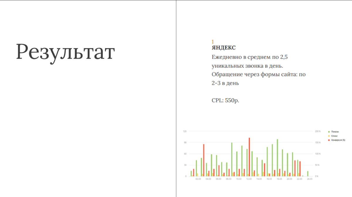 5. Контекстная Реклама: запущена контекстная реклама в интернете, которая позволила привлечь клиентов, ищущих информацию о стоматологических услугах.